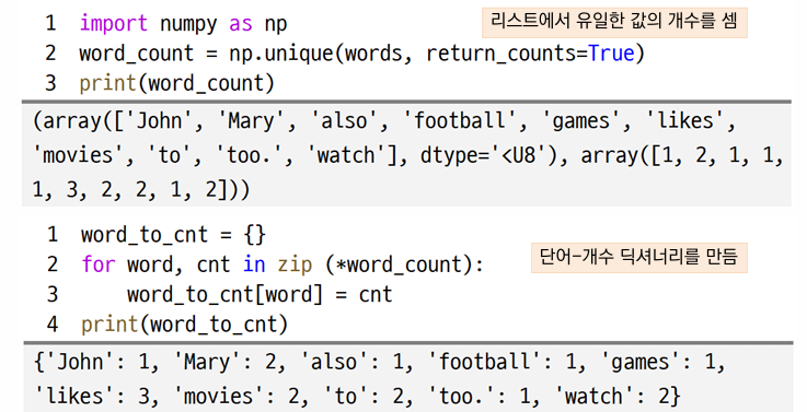 단어를 컴퓨터가 이해할 수 있도록 벡터(숫자들의 배열)로 변환하는 기법