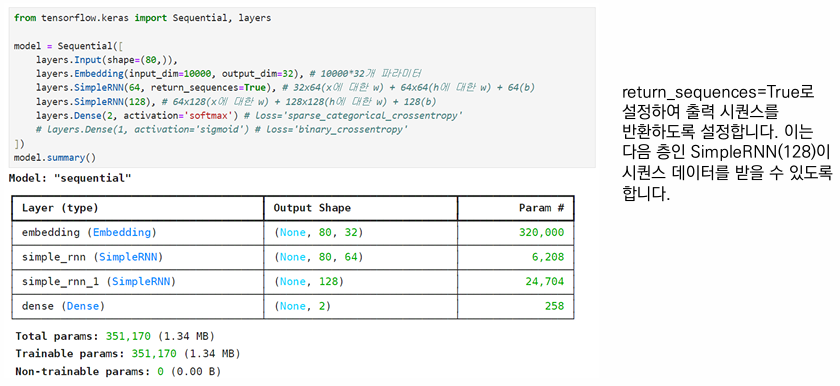 layers.Dense(2, activation='softmax') # 부정 또는 긍정 확률값이 출력