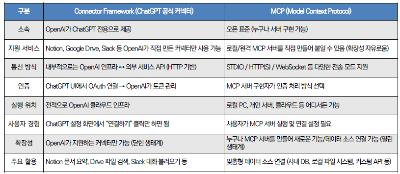 - Connector Framework vs MCP 비교