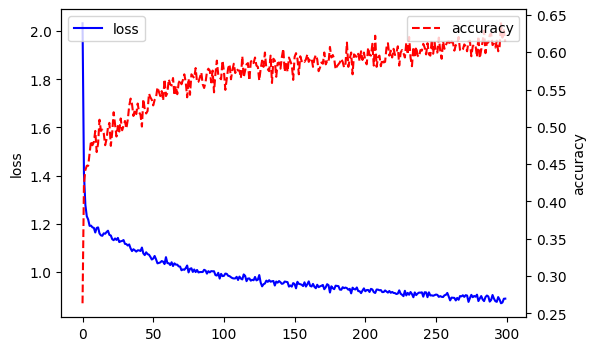 history = model.fit(X_train, y_train, batch_size=200, epochs=300)